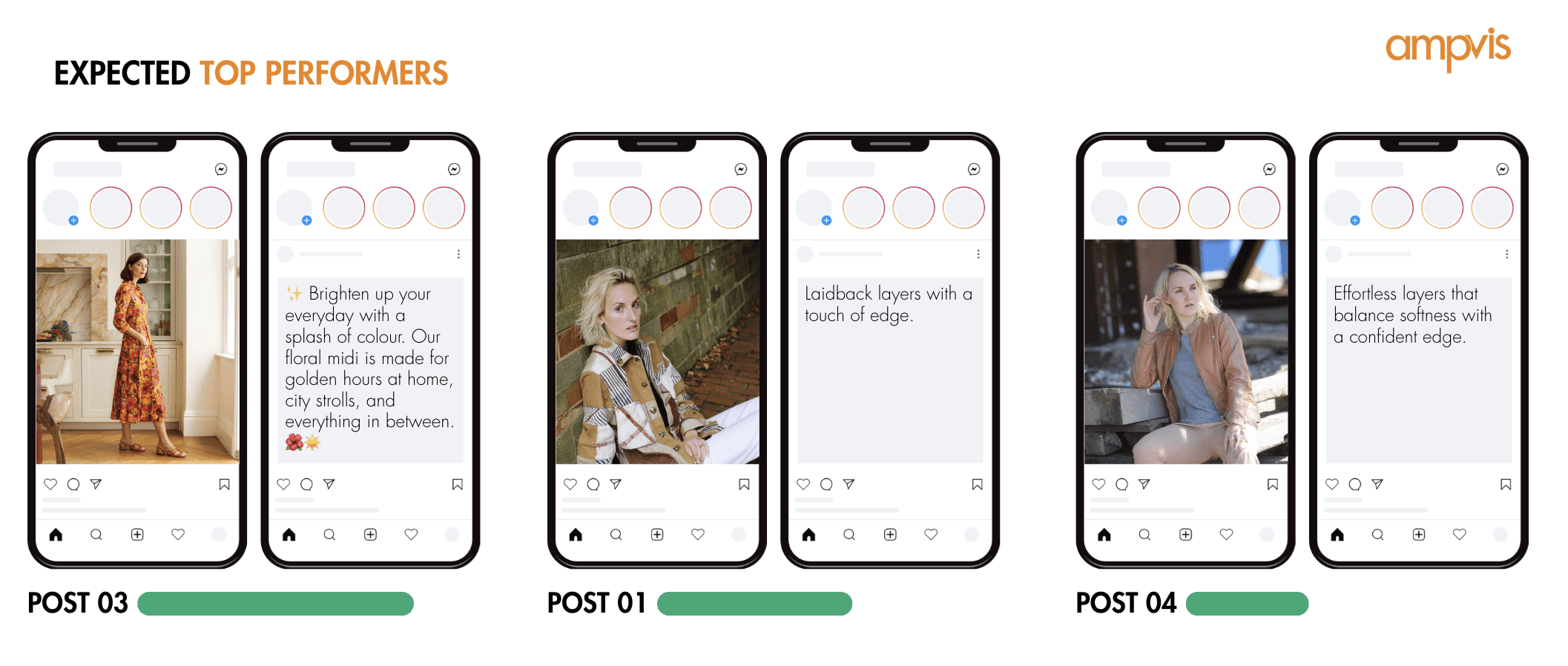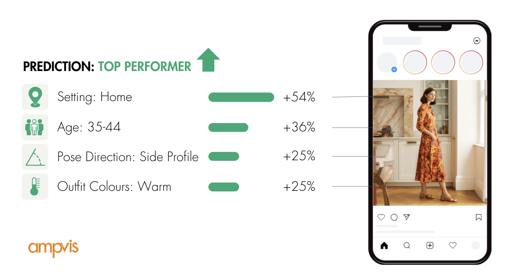 AmpVis replaces wasted A/B tests with a clear report: predicted top performers with key drivers of performance.